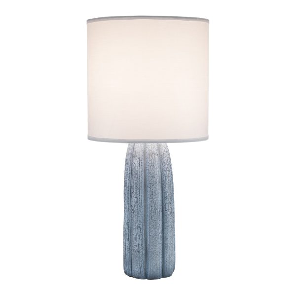 Lámpara de mesa diseño transicional, estilo 660-123, color: nogal quemado (123), elaborada en cuerpo y base de poliresina, pantalla cilíndrica color: crema de tela laminada en estireno. Altura: 72 cms.